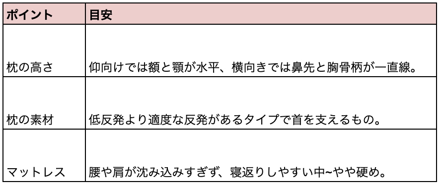 - 高さや硬さが合わない枕・マットレス
